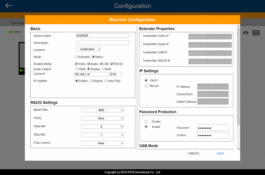 В продаже предлагаются как готовые комплекты из передатчика и приемника, так и эти же устройства отдельно (KE8952T и KE8952R соответственно). В сочетании с фирменным управляющим программным обеспечением KE Matrix Manager (CCKM) и подключением в локальную сеть вы можете реализовать не только схему один-к-одному, но и много-ко-многим, когда передатчиков и приемников будет разное число и сочетаться они будут в любых комбинациях.