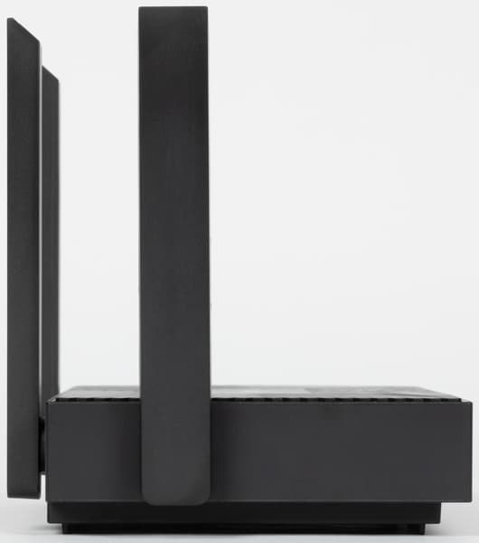 Несъемные антенны с одной степенью свободы расположены на боковых торцах и сзади. В случае ориентации вверх, общие требуемые размеры пространства для размещения роутера составят 200×120×130 мм, плюс немного добавить сзади для подключения кабелей.