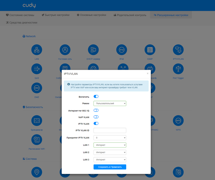 Далее идет очень большой раздел «Расширенные настройки». В нем насчитывается более 35 страниц, сгруппированных по темам. Все описывать здесь не будем, посмотрим только на самые полезные. Для интересующихся подробностями напомним ссылку на эмулятор веб-интерфейса.