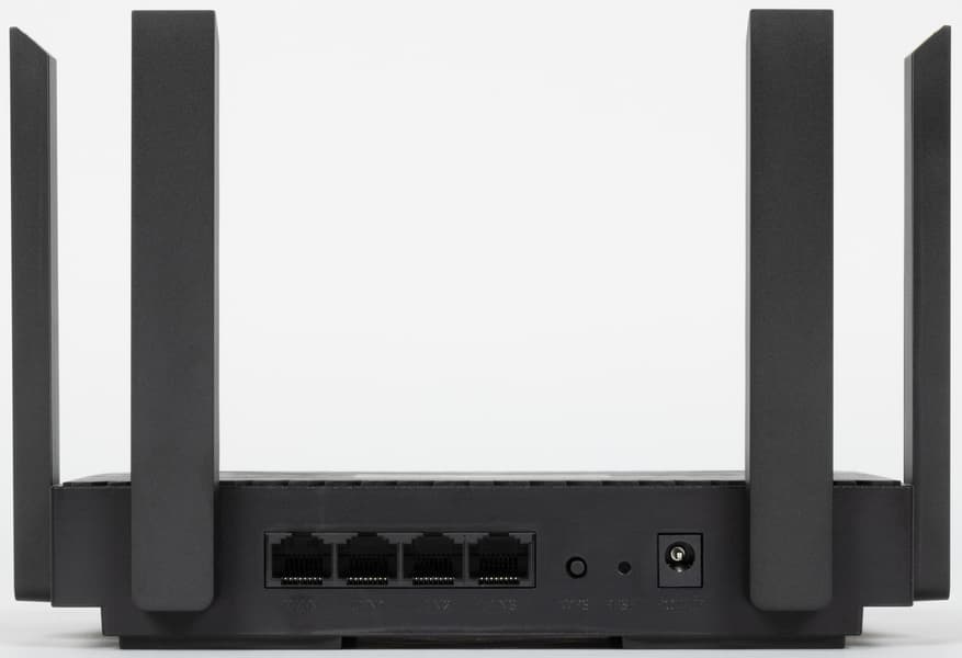 Набор портов и органов управления сзади стандартный — проводные гигабитные порты WAN и три LAN, кнопка Wi-Fi, скрытая кнопка сброса и вход питания. Отдельного аппаратного выключателя питания в этой модели нет.