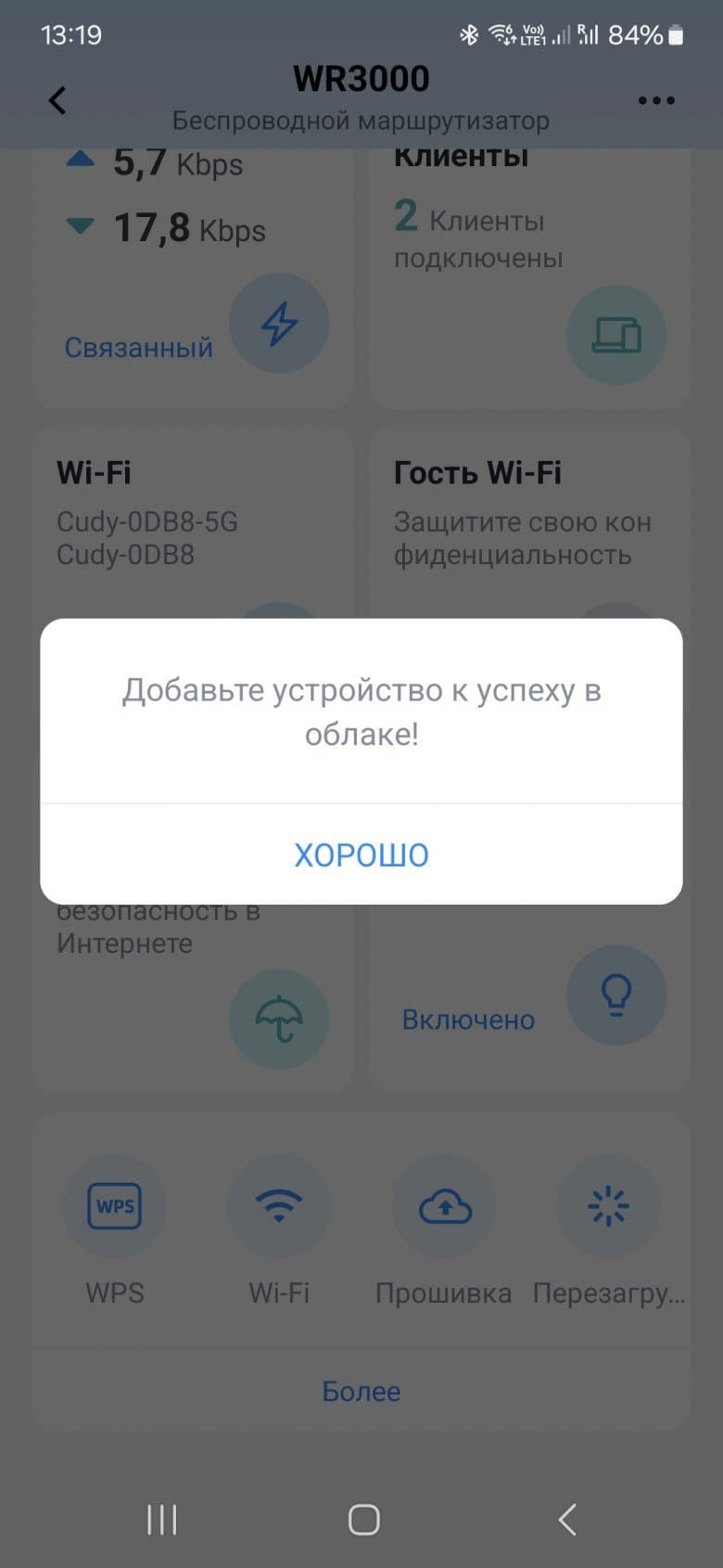 На странице с описанием роутера на сайте производителя обнаружилась функция облачного доступа и управления. Странно, что в веб-интерфейсе про это ничего не было. Для работы с данным сервисом нужно установить фирменное приложение Cudy на смартфон (поддерживаются Android и iOS) и зарегистрировать через него аккаунт. Далее можно подключиться к сети роутера и получить доступ к нему (конечно, потребуется знать пароль администратора роутера). После этого в программе можно активировать облачный режим и тогда работать с роутером можно будет из любой точки мира (при условии, что на роутере есть интернет).