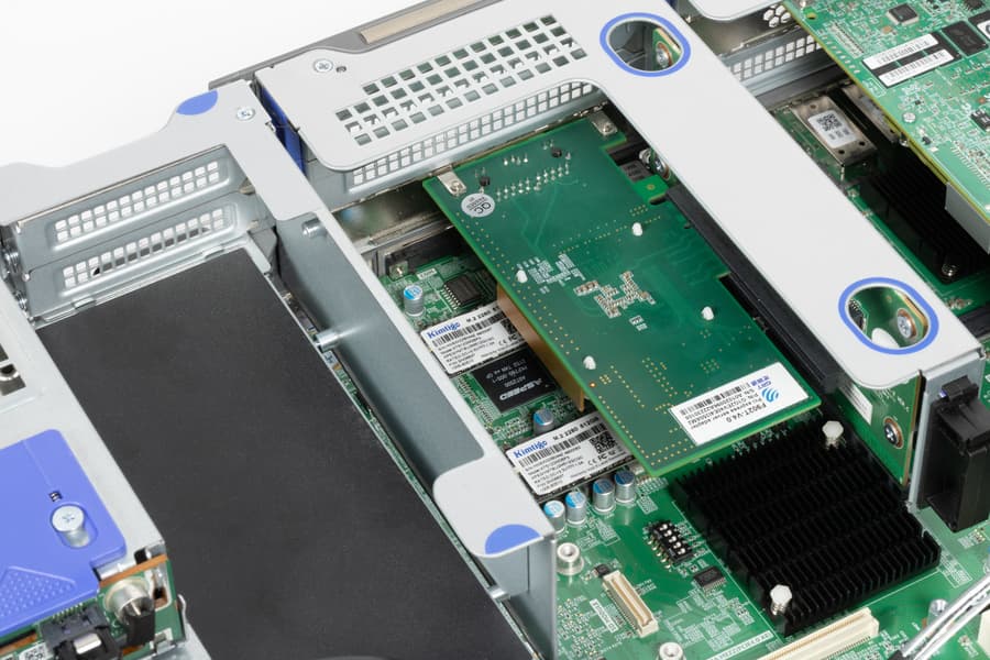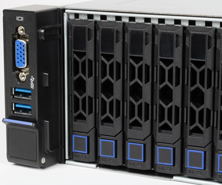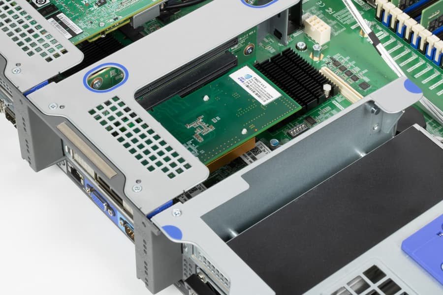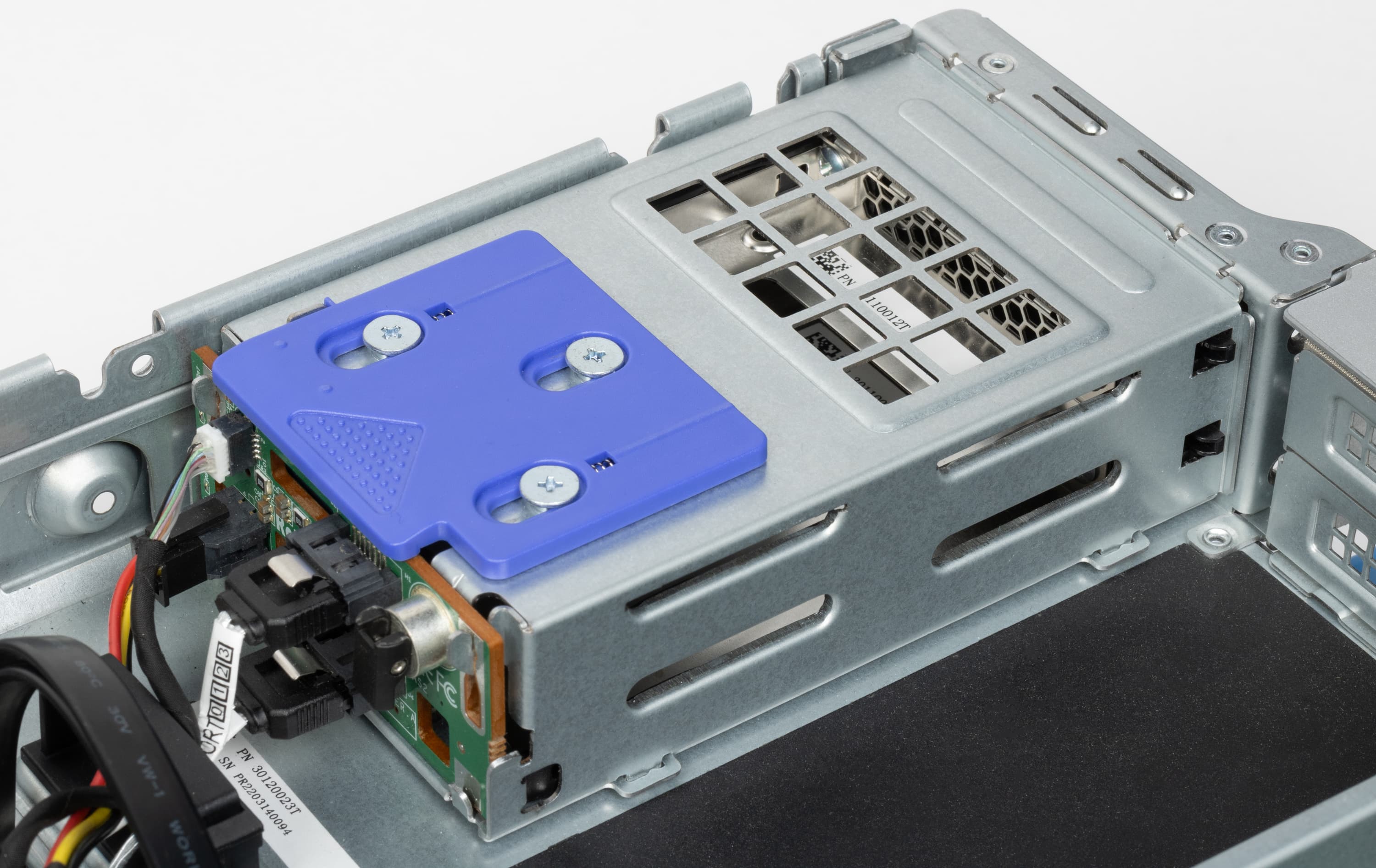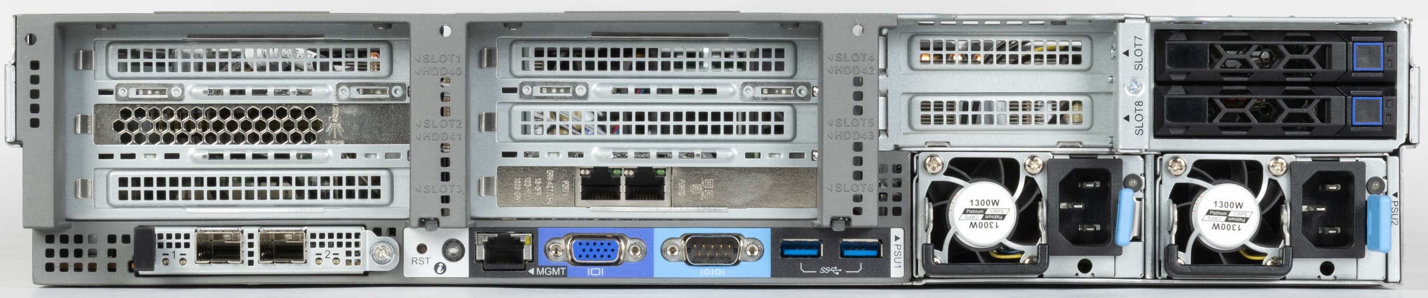 Для тестирования мы также установили один SATA SSD в отсек на задней панели сервера для установки операционной системы. В качестве альтернативы для системного диска можно также использовать внутренний порт USB 3.0.