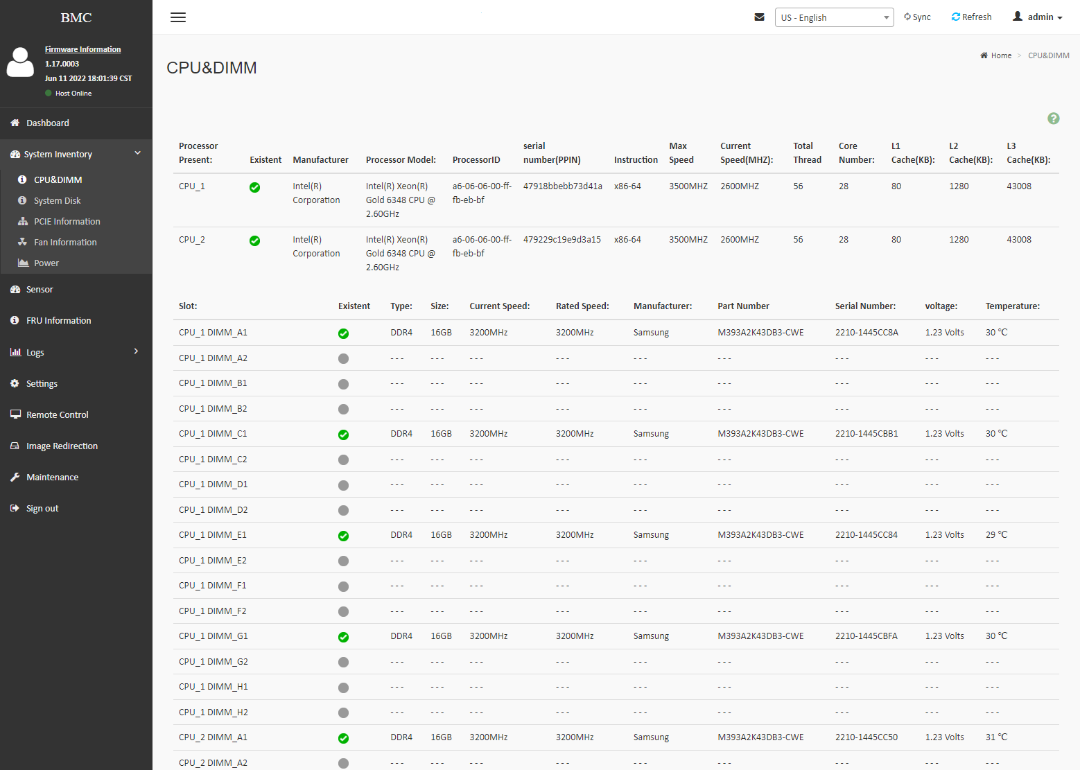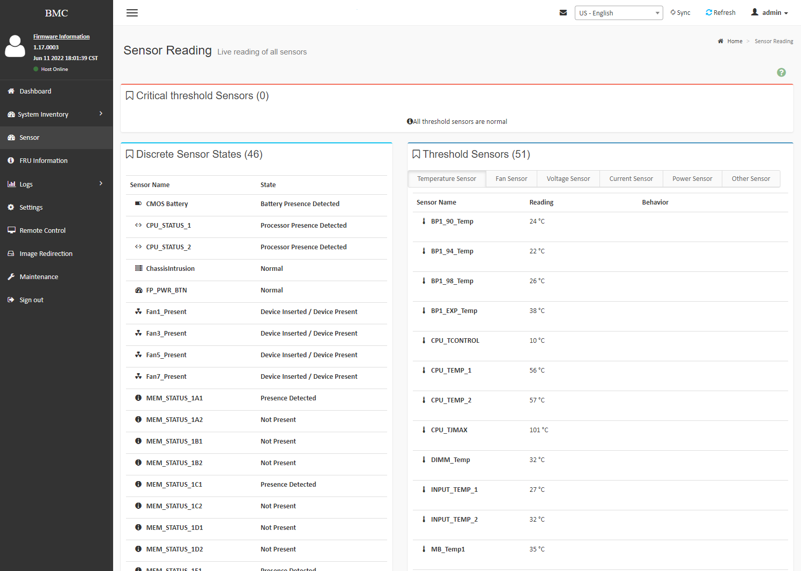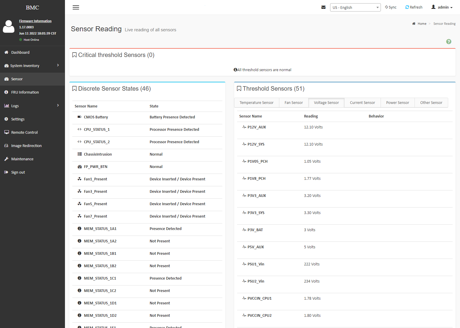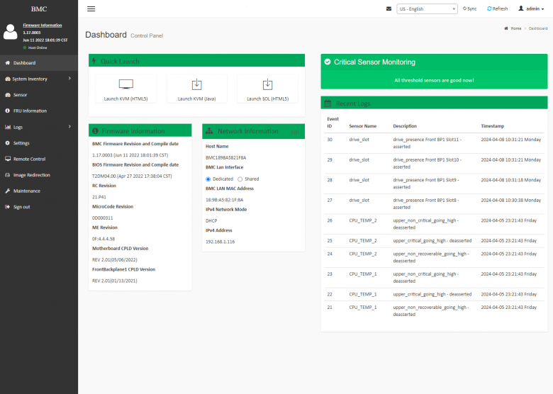 Веб-интерфейс IPMI есть на английском и китайском языках. Производитель материнской платы просто использовал готовое решение American Megatrends Inc, которое уже встречалось нам в других продуктах.