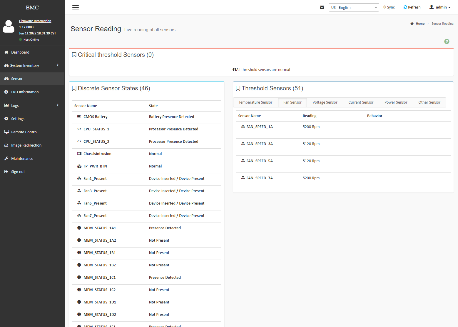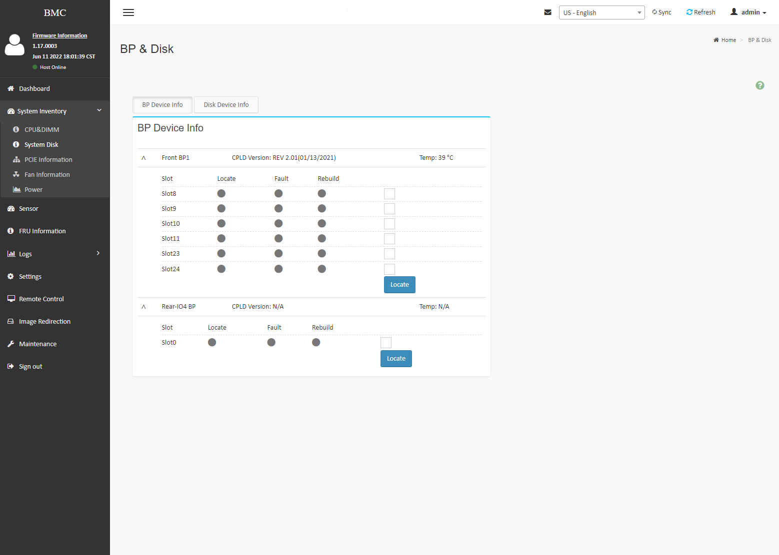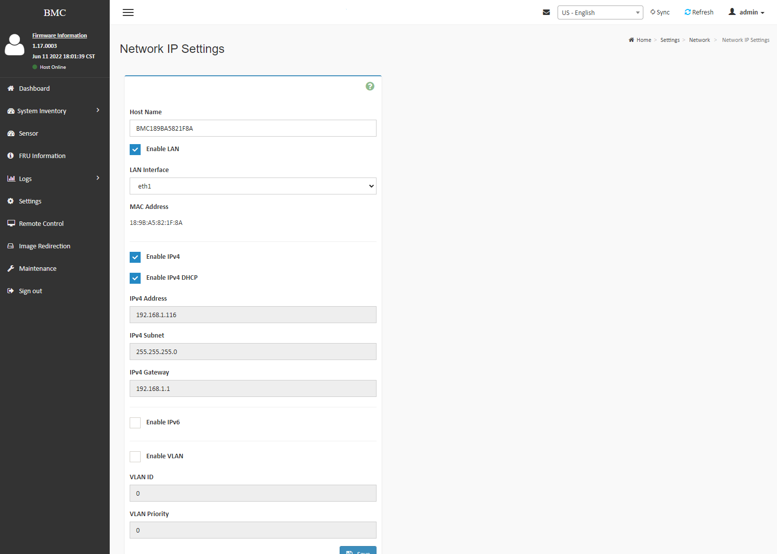 Веб-интерфейс IPMI есть на английском и китайском языках. Производитель материнской платы просто использовал готовое решение American Megatrends Inc, которое уже встречалось нам в других продуктах.