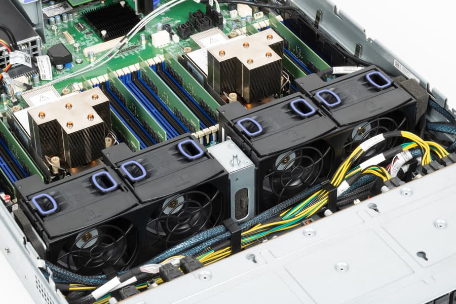 На процессорах установлены только радиаторы, причем относительно небольшие. Но благодаря специальным направляющим воздушных потоков, они способны обеспечить комфортный температурный режим.
