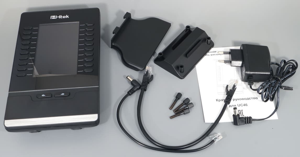 Стандартный комплект включает в себя консоль расширения Htek UC46 и следующие аксессуары: