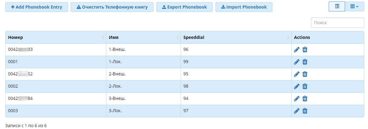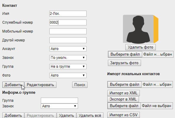 В среде FreePBX тоже имеется инструмент для создания списка контактов, но его возможности поскромнее. Например, группу здесь не создашь и фотографию контакта не загрузишь.