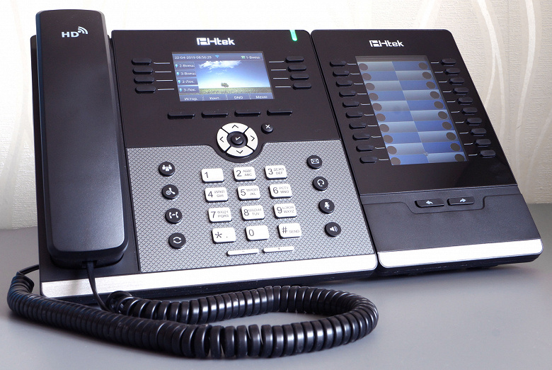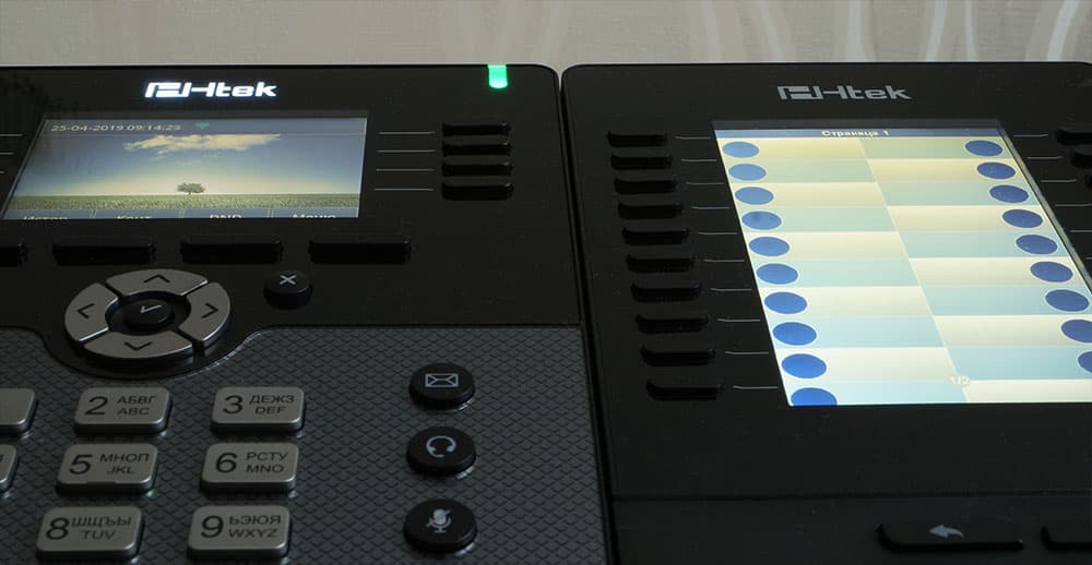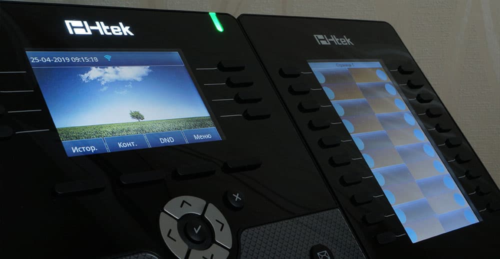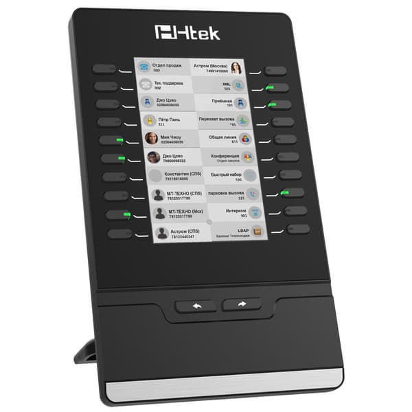 Теоретически IP-телефоны Htek поддерживают работу с шестью (!) консолями расширения — это во-о-от такой паровозик на рабочем столе. Трудно представить ситуации, когда может понадобиться такое количество доступных одновременно контактов. Разве что какая-то диспетчерская, где требуется мгновенный вызов одного из нескольких сотен абонентов.