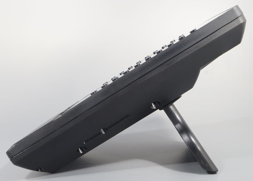 Корпус консоли состоит из двух блоков: черно-зеркальной панели дисплея с клавишами и матового основания с двумя навигационными кнопками. Яркий цветной дисплей обеспечивает неплохие углы обзора, а встроенные в клавиши светодиоды указывают на активность того или иного аккаунта либо функции.