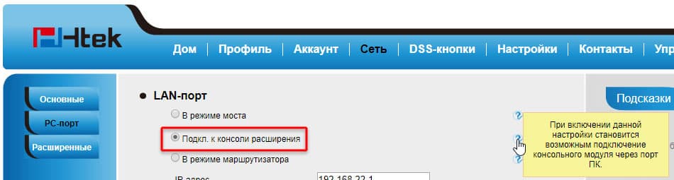 Мы уже знаем, что управлять настройками телефонов удобнее всего через их веб-интерфейсы. Для того, чтобы активировать подключенную консоль, достаточно отметить соответствующий пункт в разделе PC-порт вкладки Сеть. По умолчанию этот порт работает в режиме моста, позволяя подключить к нему компьютер. Таким образом, изменив роль порта, мы отсекаем возможность подключения ПК, зато получаем взамен консоль.