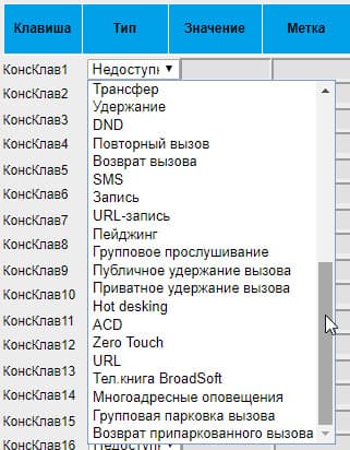Дальнейшие действия нам знакомы из настроек телефонного аппарата — каждой клавише может быть присвоена одна из 28 разных функций.