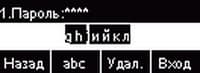 Ввод текстово-цифровой информации организован достаточно удобно: при нажатии цифровой клавиши набора на дисплее появляется строка с доступными символами, остается выбрать нужную букву или цифру из списка с помощью навигационных кнопок-стрелок. Наборы символов можно менять, последовательно нажимая вторую снизу клавишу.