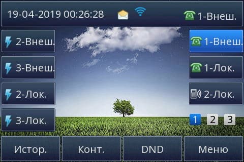 Примечательно, что любое изменение, производимое в веб-интерфейсе телефона, мгновенно отображается на дисплее аппарата — не требуется ни перезагрузки, ни ожидания. Например, при настройке клавиш линии после нажатия кнопки сохранения изменений не прошло и секунды, как дисплей телефона осветился и на нем отобразились только что назначенные функции. Вот они, в правой части экрана.