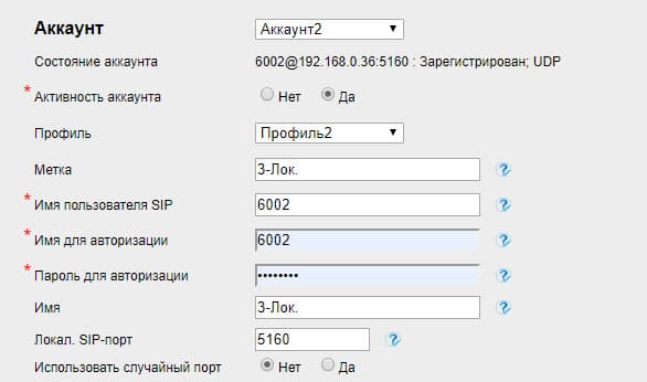 При наличии второго аккаунта (как в нашем случае с локальной мини-АТС) эту несложную операцию следует повторить, в результате чего телефон получает два номера: с внешнего сервиса и из локального FreePBX.