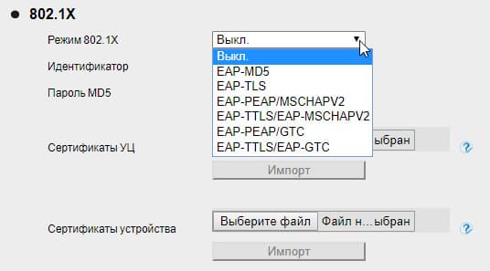 Речь, в частности, о способах аутентификации, поддерживаемых телефоном (точнее, всеми IP-телефонами Htek). Поддержка стандарта аутентификации и авторизации пользователей 802.1X, реализованная в телефоне, включает в себя несколько протоколов. Их выбор зависит от способов аутентификации, используемых на сервере. При этом имеется возможность загрузить сертификат устройства с закрытым ключом и сертификаты удостоверяющего центра.
