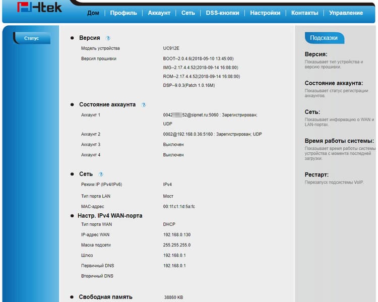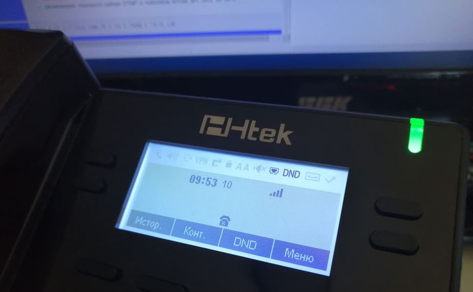 Изучение функций и особенностей аппарата изучалось совместно с другими моделями телефонов Htek, для всех устройств заранее были зарегистрированы trial-аккаунты в одном из популярных VoIP-сервисов. Рассматриваемый телефон тоже получил свой номер, по которому был доступен в любой момент. Если, конечно, был подключен к Сети.