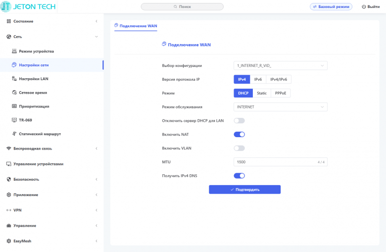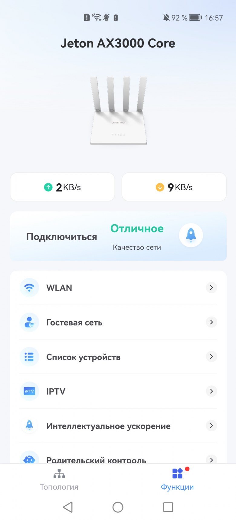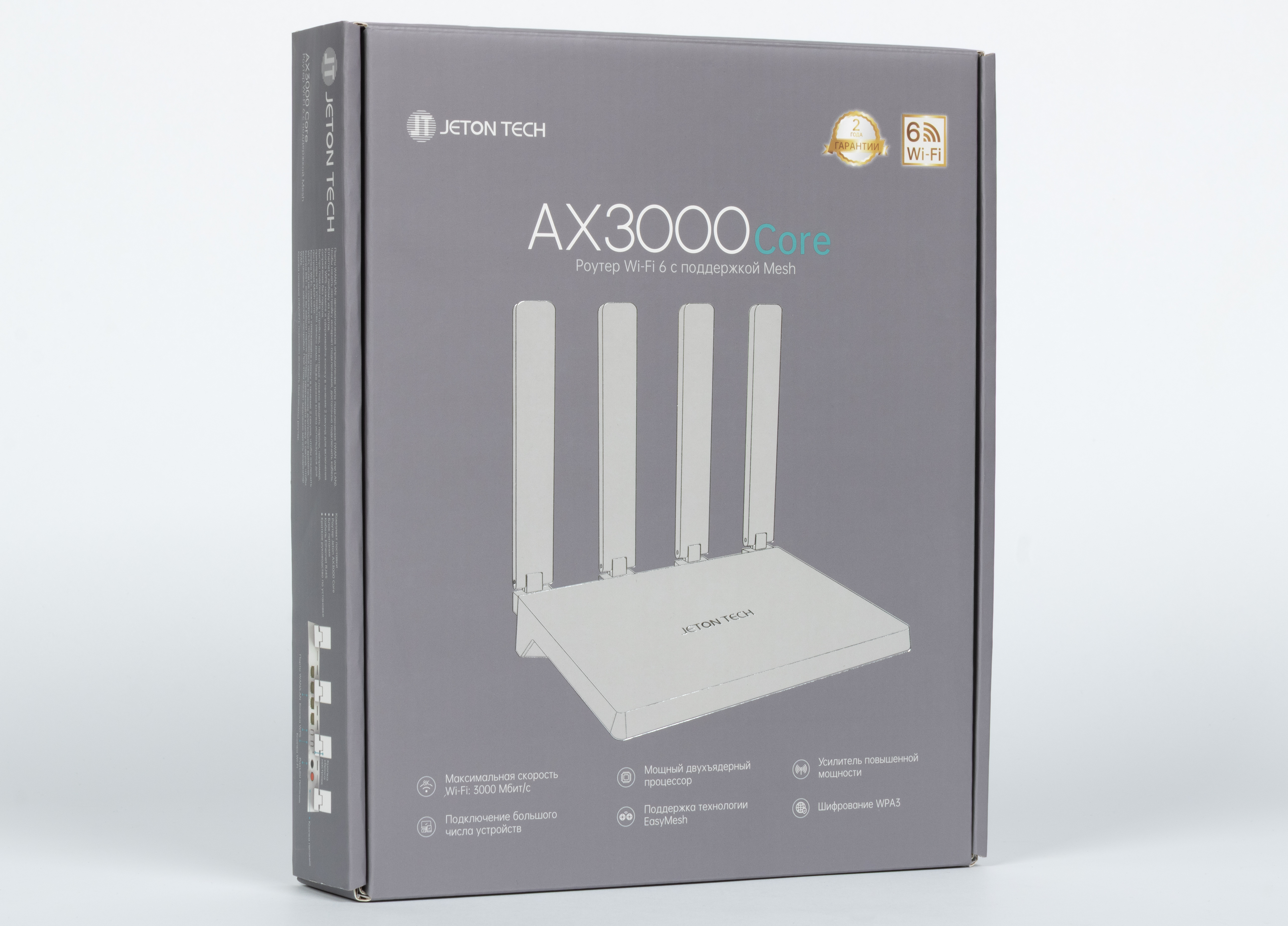 На сайте компании, который пока есть только на английском языке, представлены предлагаемое производителем сетевое оборудование, включая роутеры, Wi-Fi адаптеры и оптические терминалы. В этой статье мы протестируем роутер Jeton AX3000 Core — четыре гигабитных порта и класс AX3000. Учитывая текущие предложения на рынке, называть эту конфигурацию unstoppable performance (как в презентации) как минимум странно. Устройство позиционируется в массовый сегмент, а его рекомендованная розничная стоимость составляет 3500 рублей.