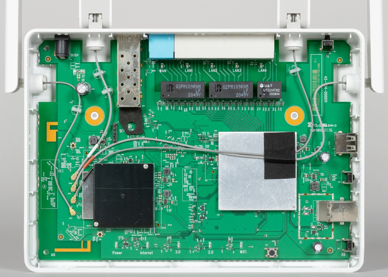 Дополнительно в последней микросхеме реализован отдельный блок радио только на прием для возможности сканирования эфира без вывода из работы основных радиоблоков. Это может быть использовано, в частности, для работы каналов DFS в диапазоне 5 ГГц. Кроме того, в контроллере есть поддержка протокола Bluetooth. Правда, в текущих версиях прошивки обсуждаемого роутера обе эти особенности не используются.