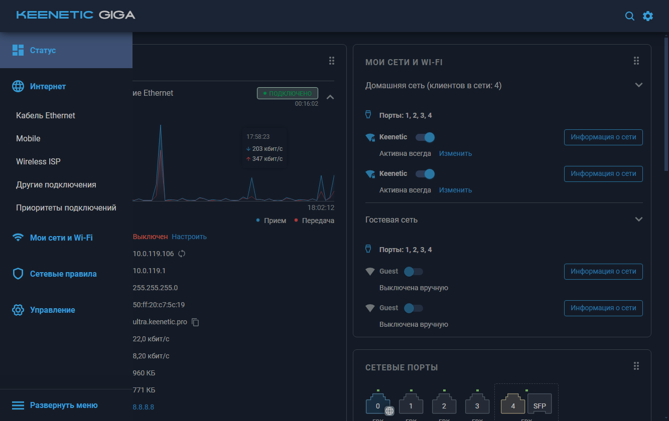 Тем более, что обещают и улучшения с точки зрения безопасности. Описывать все возможности KeeneticOS в статье нет смысла — их слишком много, так что здесь скорее будут представлены иллюстрации нового дизайна (кстати, доступного и в темной теме).
