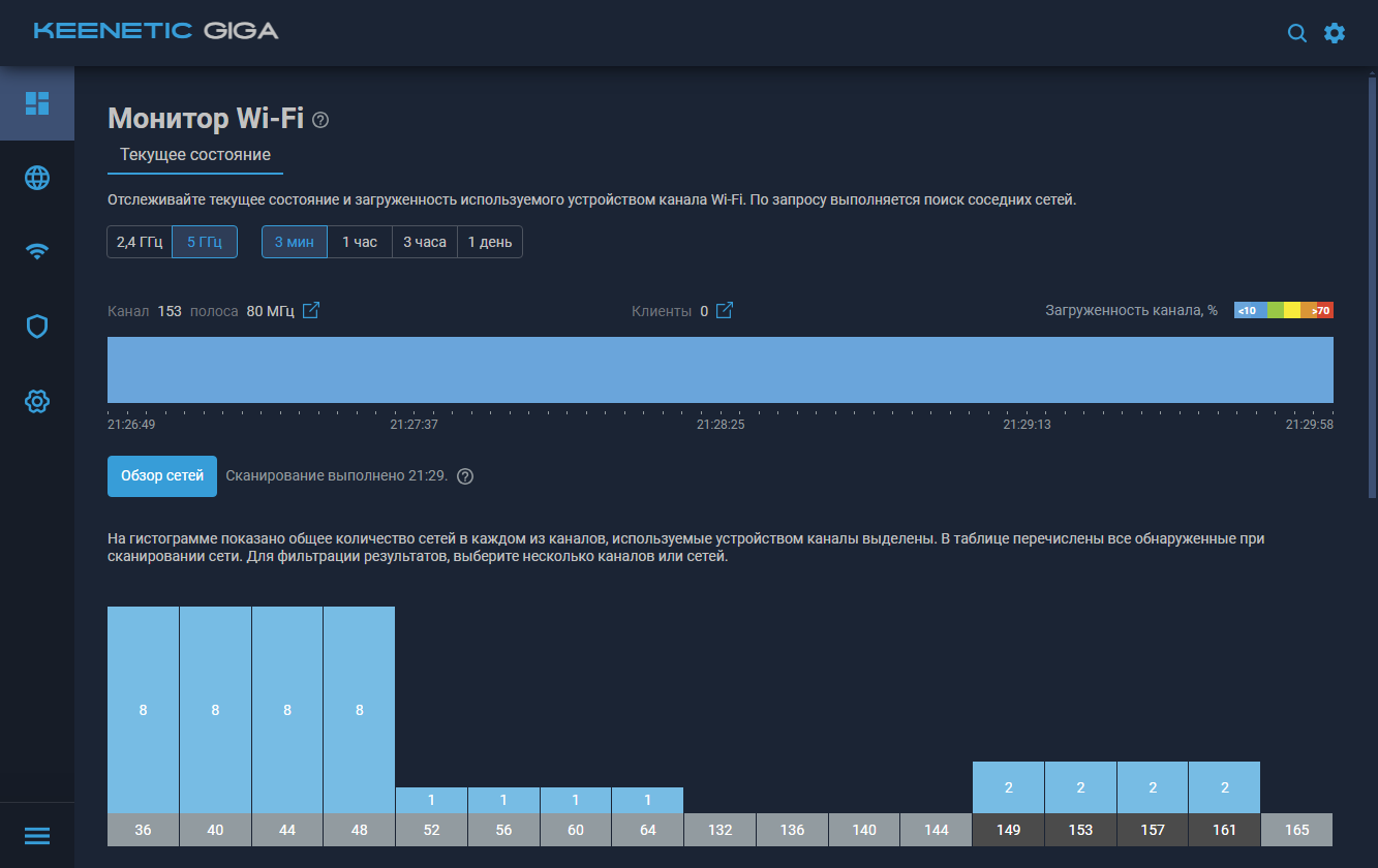 Монитор Wi-Fi поможет определить эффективность работы беспроводных точек доступа роутера. Отметим, что отдельного независимого сканера у данной модели нет.