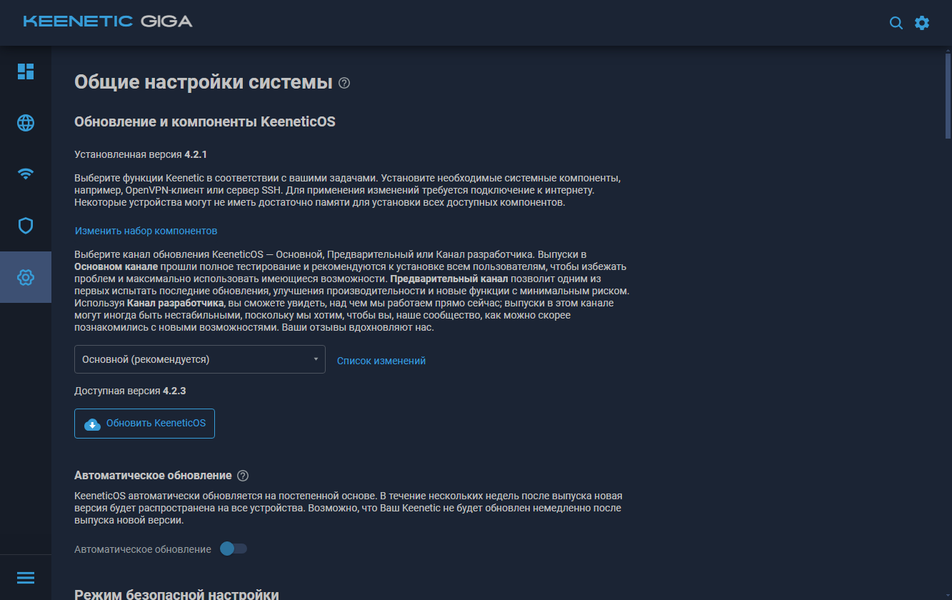 Основная ветка прошивок для данной модели — KeeneticOS 4.2. На сайте производителя публикуются подробные описания изменений. В этой ветке был существенно обновлен дизайн веб-интерфейса — как водится, для «улучшения удобства использования». Конечно, тем, кто привык к прошлой версии, новинка с первого взгляда может показаться менее понятной, но от прогресса никуда не уйти.