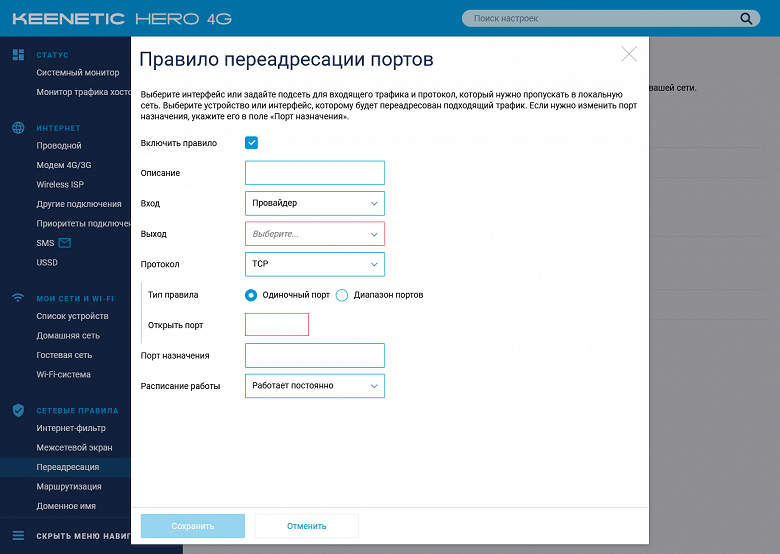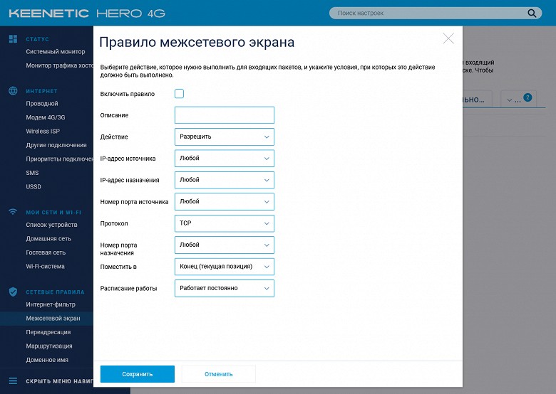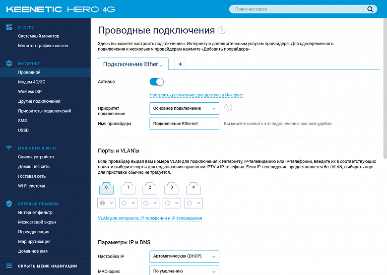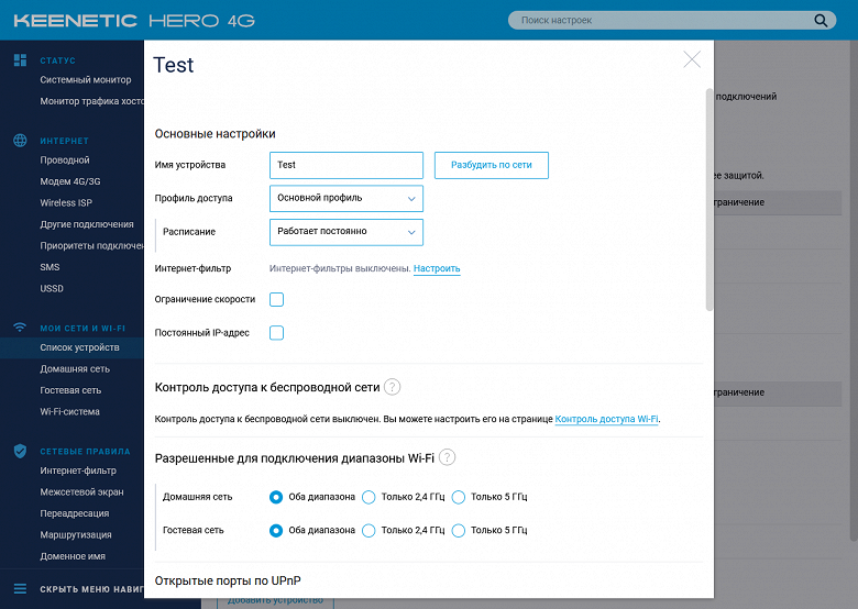 Коротко пройдемся по возможностям текущей версии прошивки на примере Keenetic Hero 4G. Младшая модель будет отличаться отсутствием настроек, связанных с USB и вторым радиомодулем.