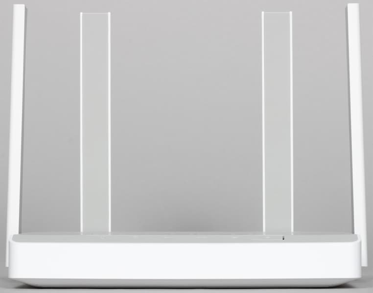 Корпус по дизайну и конструкции полностью аналогичен ранее выпущенным моделям. Основная часть из белого матового пластика, верхняя панель серая и тоже матовая. Размеры без учета антенн и подключения кабелей составляют 213×153×32 мм. Две антенны находятся на боковых сторонах и две сзади. Они несъемные и имеют по две степени свободы. В варианте «все антенны строго вверх» для установки потребуется примерно 240×180×190 мм.