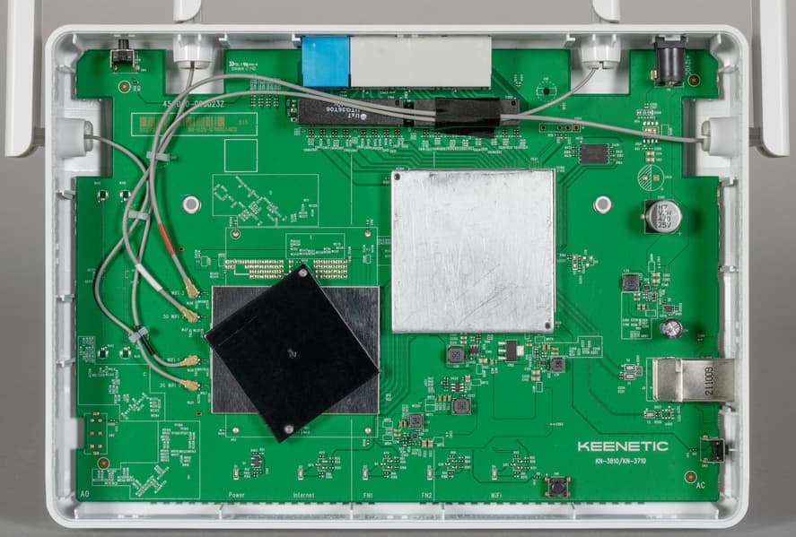 Устройство построено на базе SoC Mediatek EN7561DU. Она имеет два ядра архитектуры MIPSEL, работающих на частоте 900 МГц и способных выполнять по два потока. По информации производителя, этот чип можно считать модернизацией популярного MT7621A (популярен он не только у Keenetic). В частности, для нового чипа заявлено использование аппаратного ускорителя между сегментами LAN и WLAN, использование шины PCIe версии 2.0 для подключения радиоблоков, увеличение производительности при обслуживании большого числа клиентов в Mesh-сети с проводным транспортным каналом.