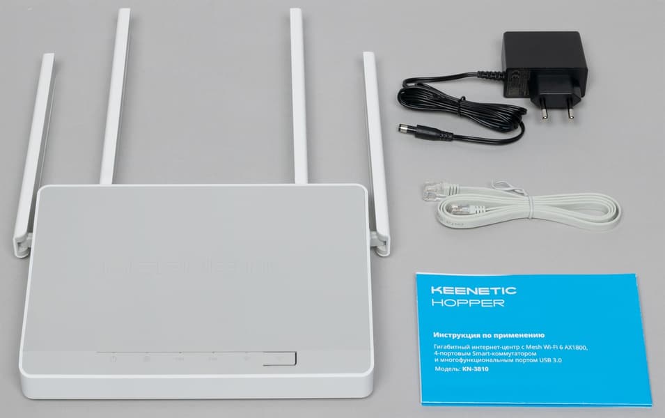 Рассматриваемая в этом материале модель Keenetic Hopper KN-3810 производит двойственное впечатление. С одной стороны, по внешнему виду с определенного ракурса ее не отличить от первых устройств компании. Но с другой стороны, внутри установлена обновленная платформа. В частности, модель соответствует беспроводному классу AX1800. При этом здесь также есть четыре проводных порта для медного кабеля и один порт USB 3.0. Так что можно считать ее упрощенной версией Keenetic Giga KN-1011 или же улучшенной Keenetic Viva KN-1910.