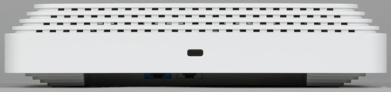 В ней кроме входа питания и пары RJ45 (без индикаторов) находятся кнопка управления (действия настраиваются), скрытая кнопка сброса и переключатель режима. Последний позволяет добавить новый узел в существующую сеть Mesh без обращения к веб-интерфейсу. Также здесь мы видим традиционную информационную табличку, где, в частности, указаны уникальные имя и пароль беспроводной сети.