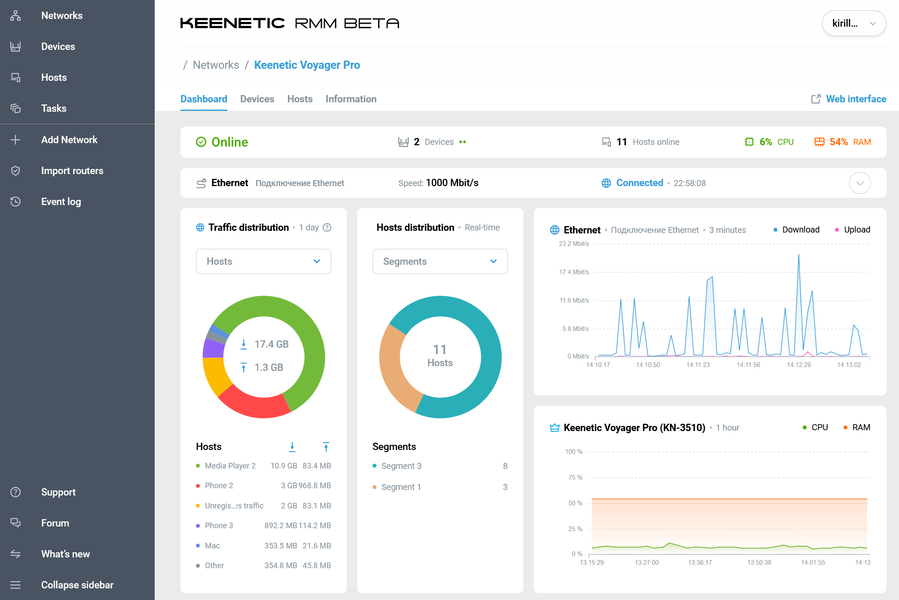 В каждой статье мы повторяем, что Keenetic активно, по крайней мере по сравнению с другими вендорами, работает над возможностями встроенного программного обеспечения. В этот раз мы попробовали такие функции, как анализатор трафика и облачная система Keenetic RMM. Обе технологии могут быть интересны широкому кругу пользователей, хотя в настоящий момент их реализацию сложно назвать законченной.