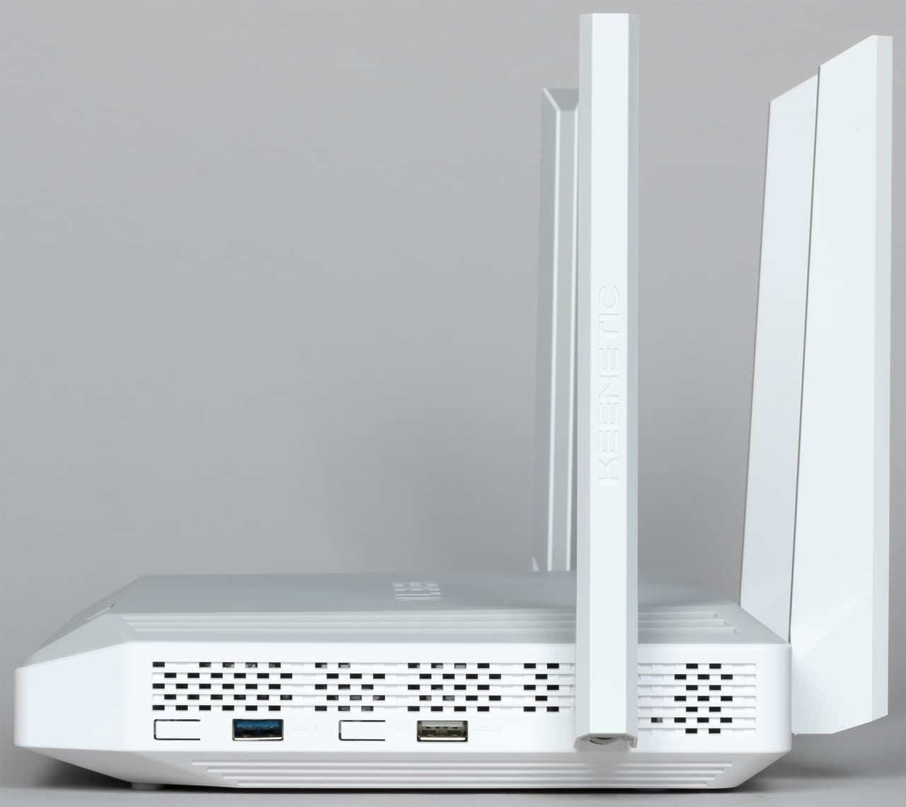 А вот контроллер USB в процессоре используется полностью — здесь есть один порт USB 3.0 и один USB 2.0. Варианты их применения стандартны: модемы, накопители, фирменные устройства Keenetic.