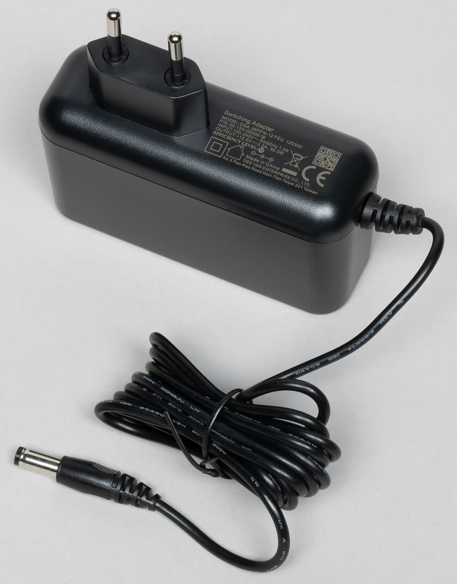 Блок питания имеет параметры 12 В 3 А (36 Вт) и достаточно крупный корпус, который в некоторых ситуациях может блокировать соседние розетки. Кабель длиной 1,5 м заканчивается стандартным 5,5 мм круглым штекером.