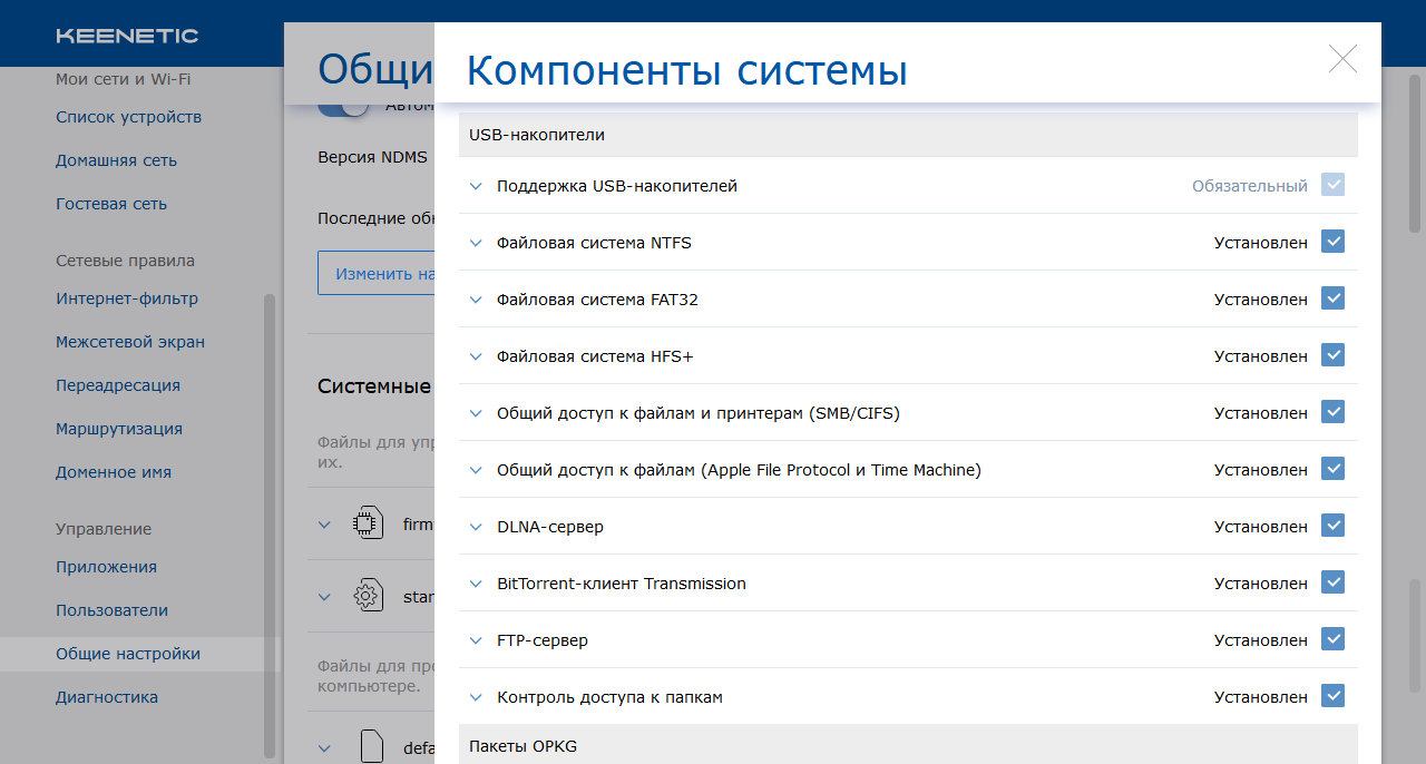 Посмотрим теперь на Keenetic Omni KN-1410. Начнем снова со стоимости. Роутеры с аналогичными возможностями (порты 100 Мбит/с, Wi-Fi 2,4 ГГц до 300 Мбит/с, USB-порт с поддержкой модемов и накопителей) предлагаются начиная с 1500 рублей, тогда как за Keenetic Omni KN-1410 просят примерно 2300 рублей — разница составляет полтора раза, или 800 рублей (кстати, если нужен только модем или DSL, а накопители и другие устройства не требуются, то разница меньше: Keenetic 4G KN-1210 предлагается за 2000 рублей). Ключевым моментом здесь является то, что роутеры с многофункциональным портом USB имеют существенно больше сценариев применения. Причем в случае Keenetic, по сравнению с решениями других компания, в них включается также работа с линиями DSL и реализация телефонной связи через трубки DECT. Да, конечно, для бюджетного сегмента работа с диском по сети 100 Мбит/с смотрится не очень весело с точки зрения скорости, но только если сравнивать ее с NAS и гигабитным оборудованием более высокого класса. Как и с Keenetic Start KN-1110, все сказанное о котором можно применить и ко второму устройству, в данном случае можно говорить о том, что программное обеспечение Keenetic Omni KN-1410 в плане функций работы с USB заметно интереснее, чем у многих других моделей. В частности, здесь есть система загрузки файлов, которая не влияет на работу остальных функций роутера, база пользователей и выбор прав для них, поддержка распространенных файловых систем и возможность работы с macOS.