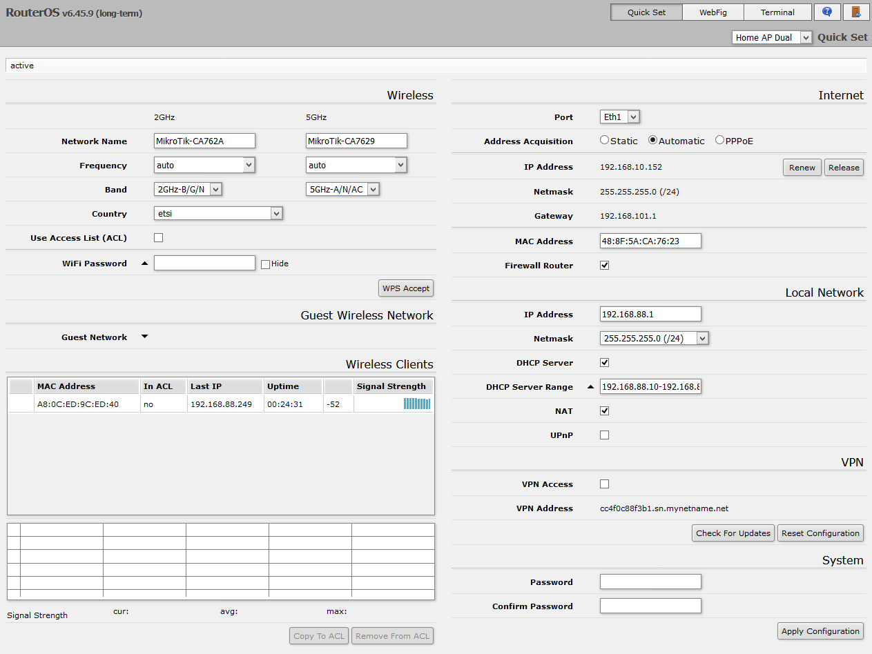 Тестирование роутера проводилось с актуальной на момент подготовки статьи прошивкой версии 6.45.9. Производитель обещает выпускать обновления в течение не менее пяти лет.