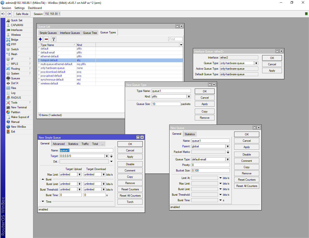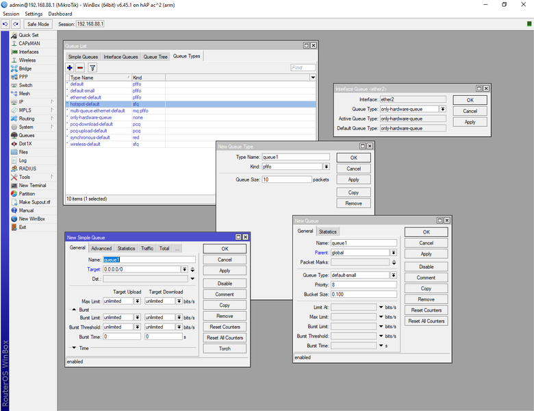 Что касается контроля и приоритизации, то есть отдельный раздел Queues, где можно задать правила с очень большим числом параметров. Например, можно сделать так, что странички веб-сайтов будут открываться быстро, но если вдруг кто-то решит скачать что-то большое — скорость будет ограничена.