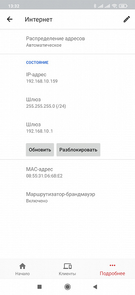 Для этого предлагается использовать меню в нижней части страницы. На странице «Клиенты» приводится список подключенных к роутеру устройств с указанием типа (порта, диапазона) подключения. При клике на конкретном клиенте будут показаны более подробные данные о нем. Здесь же можно изменить отображаемое имя и назначить значок по типу клиента. Опции блокировки или ограничения доступа здесь нет.