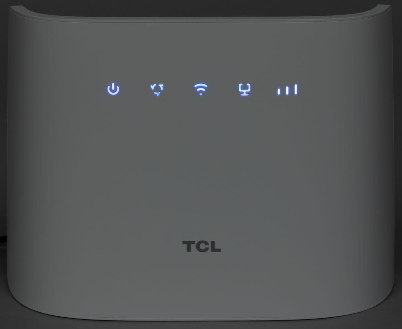 В верхней части лицевой панели находятся индикаторы работы. Они выполнены в виде крупных значков и хорошо видны. Использованы яркие светодиоды, так что оценить состояние можно и на расстоянии. В штатном режиме 4G все индикаторы светят синим.