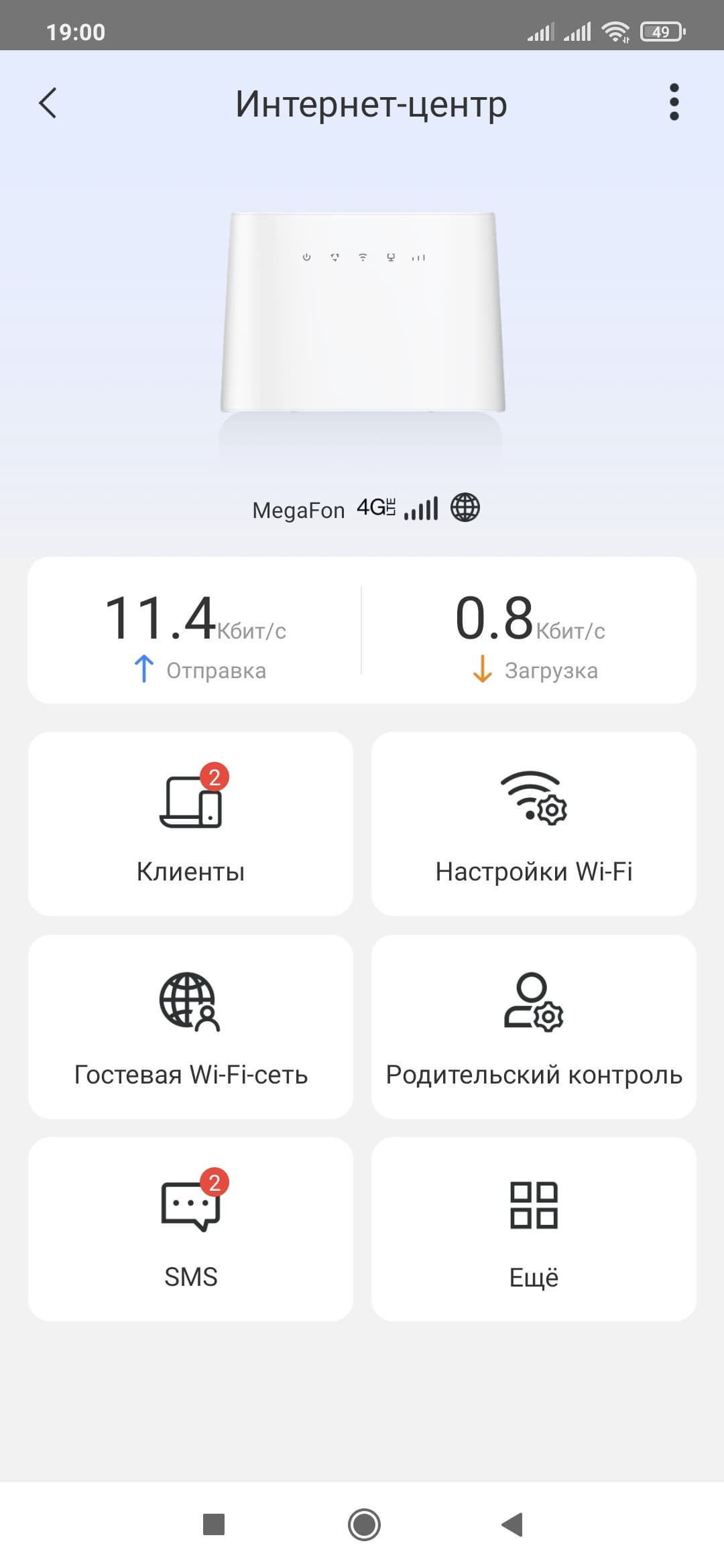 Встроенное программное обеспечение можно охарактеризовать как вполне стандартное для массового сегмента. Из интересного можно отметить режим резервирования, гостевую беспроводную сеть, возможность работы с SMS и USSD и голосовую связь через технологию VoLTE. При этом многим пользователям даже не придется ничего дополнительно настраивать — просто установить SIM-карту и подключить свои устройства через Wi-Fi. Упомянем здесь также мобильное приложение для управления роутером.