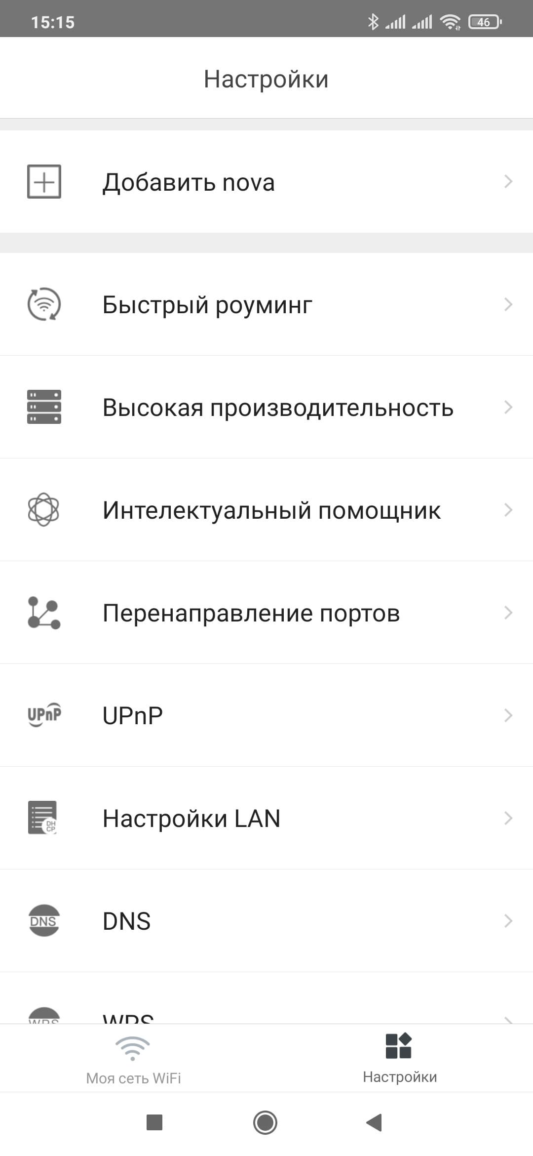 Для подключения к интернету поддерживаются IPoE, PPPoE, PPTP и L2TP. Возможности изменить MAC-адрес порта WAN нет. Кроме того, на этой странице можно включить режим моста, когда узлы Nova работают только как точки доступа для выхода в интернет через основной роутер.