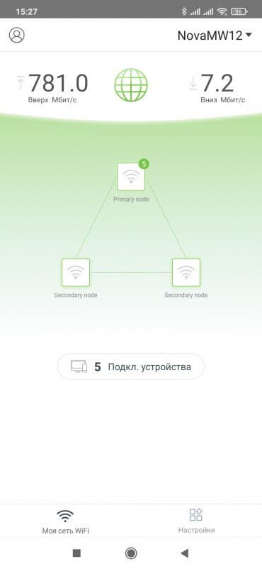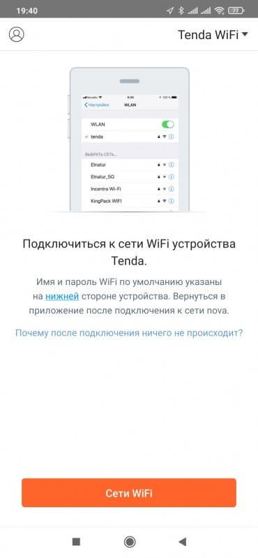 Для настройки системы необходимо использовать фирменное приложение. Веб-интерфейса в данном продукте не предусмотрено. Так что устанавливаем на смартфон программу Tenda WiFi, подключаем к первому узлу кабель от провайдера и питание. Менее чем через минуту индикатор начинает гореть зеленым.