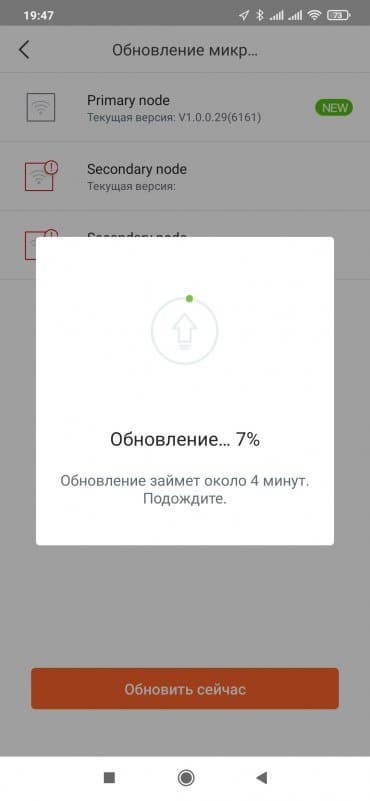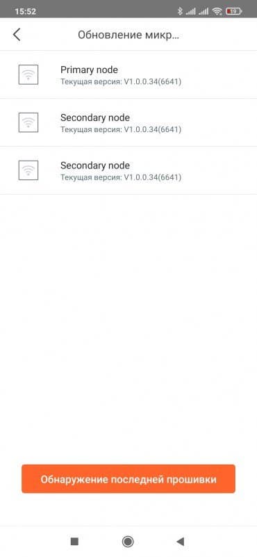 Обновление прошивки на всех узлах системы осуществляется на одноименной странице. Здесь будут указаны все участники Mesh-сети и версии их прошивок. Процесс обновления происходит с загрузкой образа через интернет и занимает около пяти минут. В течение этого времени в программе ничего делать нельзя, но сеть работать продолжает. В заводских настройках настроена перезагрузка системы в три часа ночи каждый день. Расписание можно поменять или отменить совсем. При этом перезагрузка будет отложена, если через основной узел будет идти активный обмен данными.