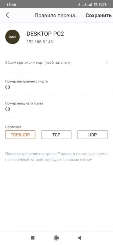 «Перенаправление портов» позволяет создать правила трансляции портов для доступа из интернета к сервисам внутренней сети (напомним, что для этой схемы обязательно иметь «белый» адрес от провайдера). При этом можно использовать разные номера для внешнего и внутреннего портов. Правда в настройках системы не удалось найти пункта по назначению фиксированных IP клиентам, без чего с трансляцией портов может быть неудобно работать. Кроме ручных правил, можно также использовать протокол UPnP.