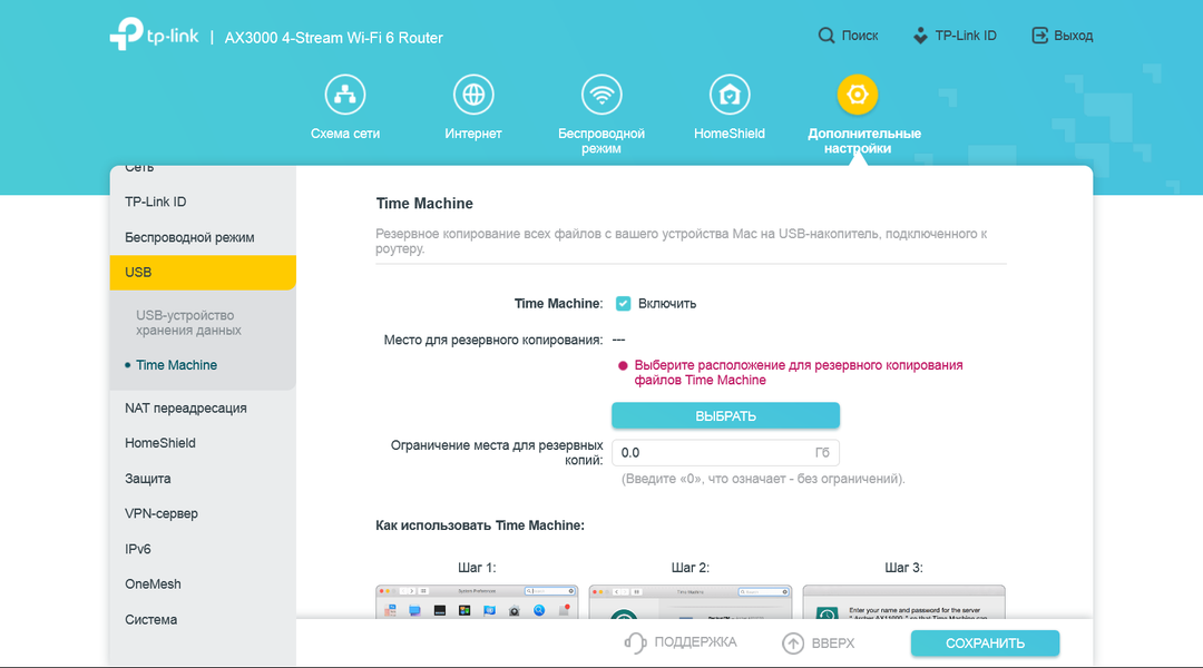 Кроме сервиса хранения файлов, пользователю доступны сервер DLNA для трансляции медиаконтента на совместимые устройства и сервер хранения резервных копий Time Machine с компьютеров на macOS.