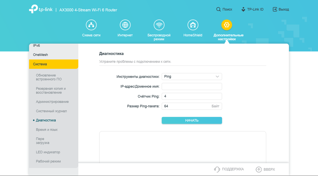 Кроме того, в этом разделе можно посмотреть или скачать журнал событий, перезагрузить роутер, настроить расписание автоматической перезагрузки, провести сетевую диагностику (ping, traceroute), отключить светодиодные индикаторы или настроить для них ночной режим, переключить роутер в режим точки доступа.