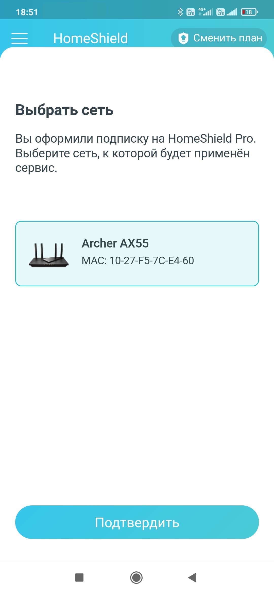 Проводится эта операция через мобильное приложение и привязанный к облачному аккаунту адрес электронной почты. В случае платформы Android и сервисов Google — открываем программу и закладку HomeShield, далее нажимаем кнопку «Сменить план» в правом верхнем углу. Читаем рекламу и, при желании, условия обслуживания и подписки, выбираем вариант на месяц. Далее идет выбор способа оплаты в вашем аккаунте. Если его нет совсем — добавляем. Подписка появится в соответствующем разделе настроек аккаунта Google. Здесь же можно будет ее отключить. Если в вашем облачном аккаунте TP-Link есть несколько роутеров, то выбираем к какому нужно применить подписку. После этого идет процесс загрузки программного обеспечения, правда не понятно — в смартфон или в роутер.