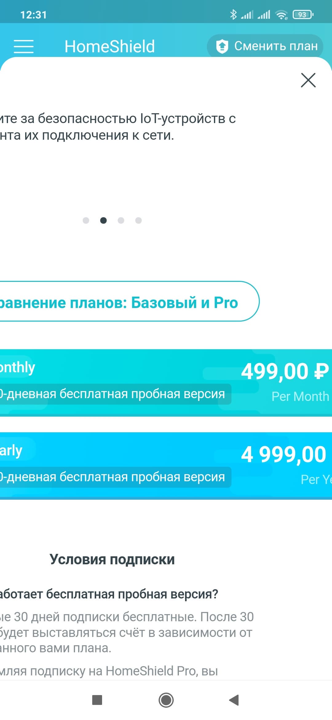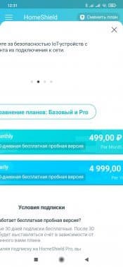 Как мы говорили выше, сервис HomeShield имеет и платный вариант с расширенными возможностями. С одной стороны, можно понять такой подход, поскольку работа многих из описанных функций явно зависит от актуальности баз данных (в частности, категорий сайтов и шаблонов атак), так что это схема с подпиской здесь более логична, чем одноразовая покупка. Плюс если говорить про расширенные возможности сбора статистики, то и и здесь потребуются облачные ресурсы для хранения данных. Для полноты тестирования посмотрим и на платную версию, а начнем с оформления бесплатной триальной подписки на месяц.