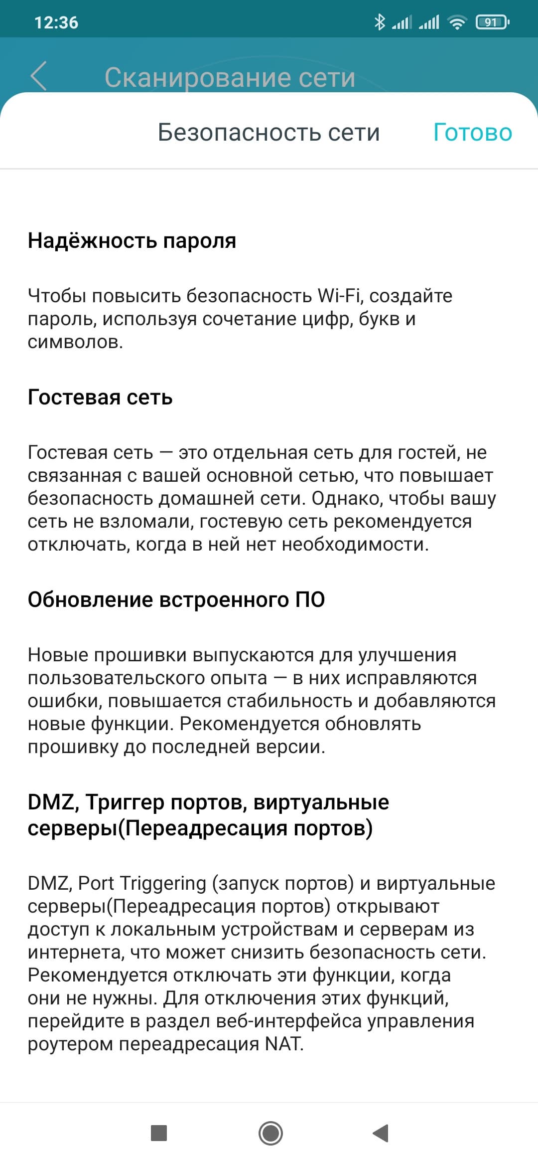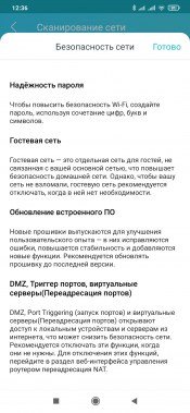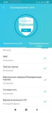 Первой на странице мобильного приложения идет проверка настроек роутера с точки зрения безопасности и производительности. Под безопасностью понимается сложный пароль, отсутствие внешних доступов и гостевой беспроводной сети и наличие актуальной версии прошивки. Под производительностью — «Анализ загрузки канала». Вероятно речь идет о выборе оптимального номера беспроводного канала для точек доступа.