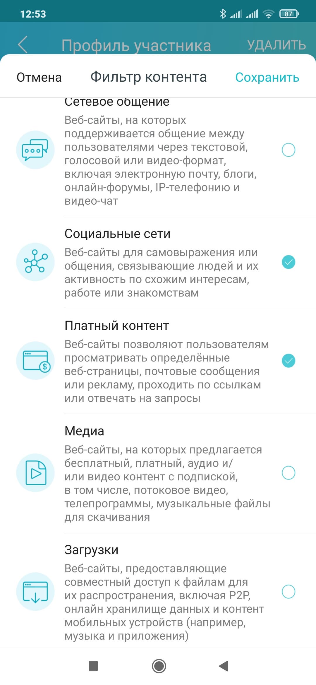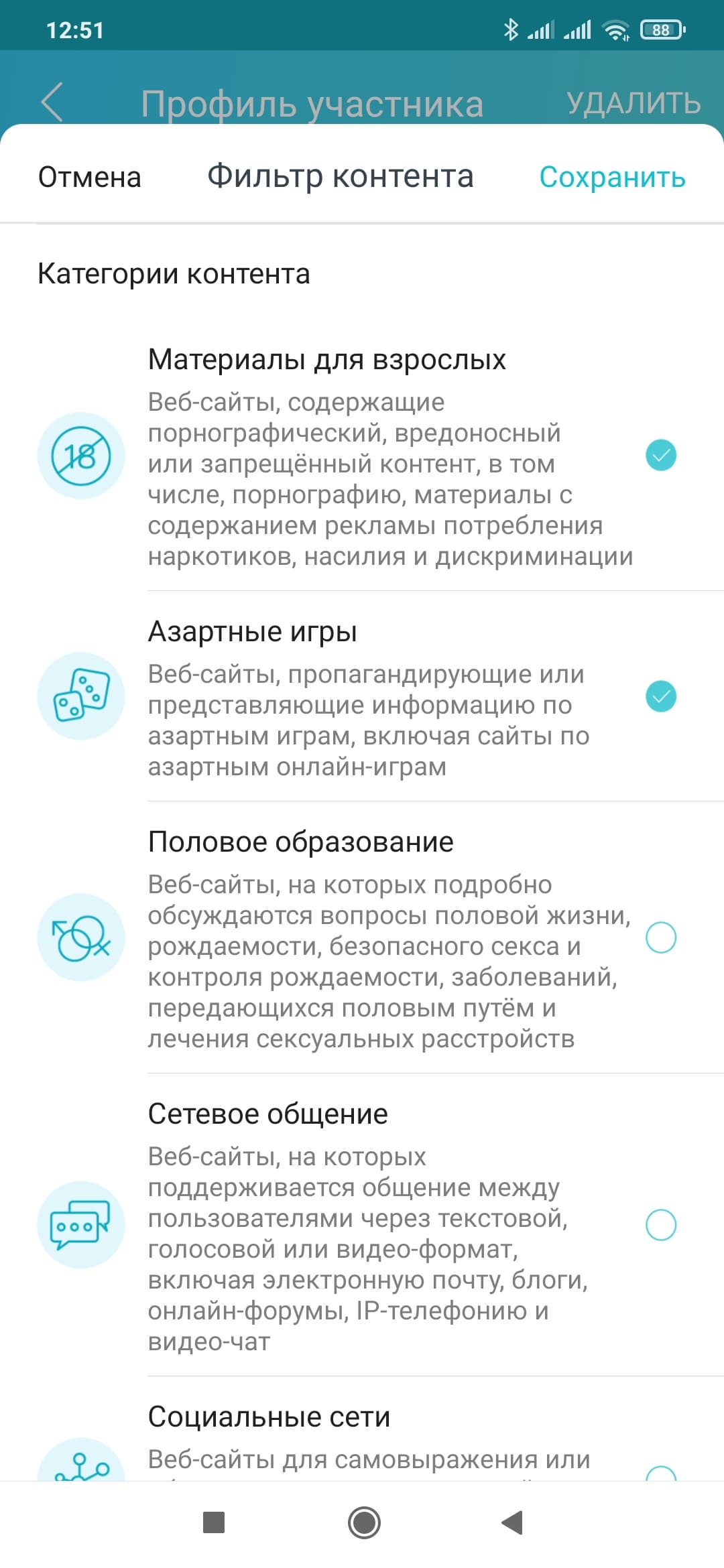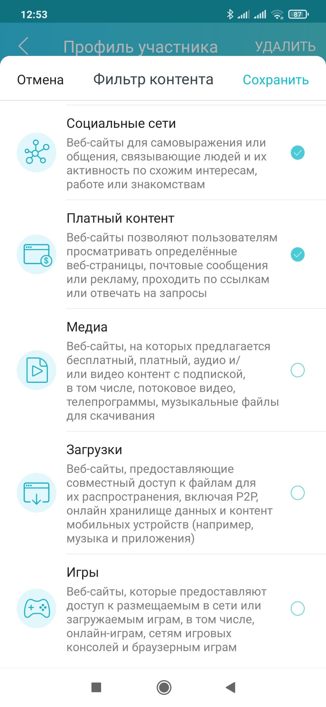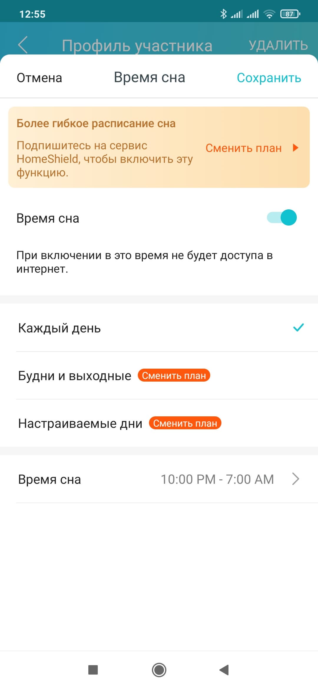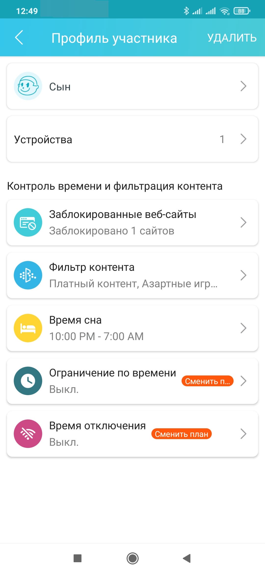 В настройках профиля для бесплатной версии сервиса доступно три функции: блокировка сайтов по имени (нужно самостоятельно указать нужны ресурсы в списке), блокировка сайтов по категориям (9 фиксированных разделов без подкатегорий, списка исключений нет) и «Время сна» (блокировка доступа к интернету, один временной промежуток на все дни недели). Далее можно будет на карточке профиля проверить время работы в сети и посмотреть списки наиболее посещаемых и заблокированных сайтов.