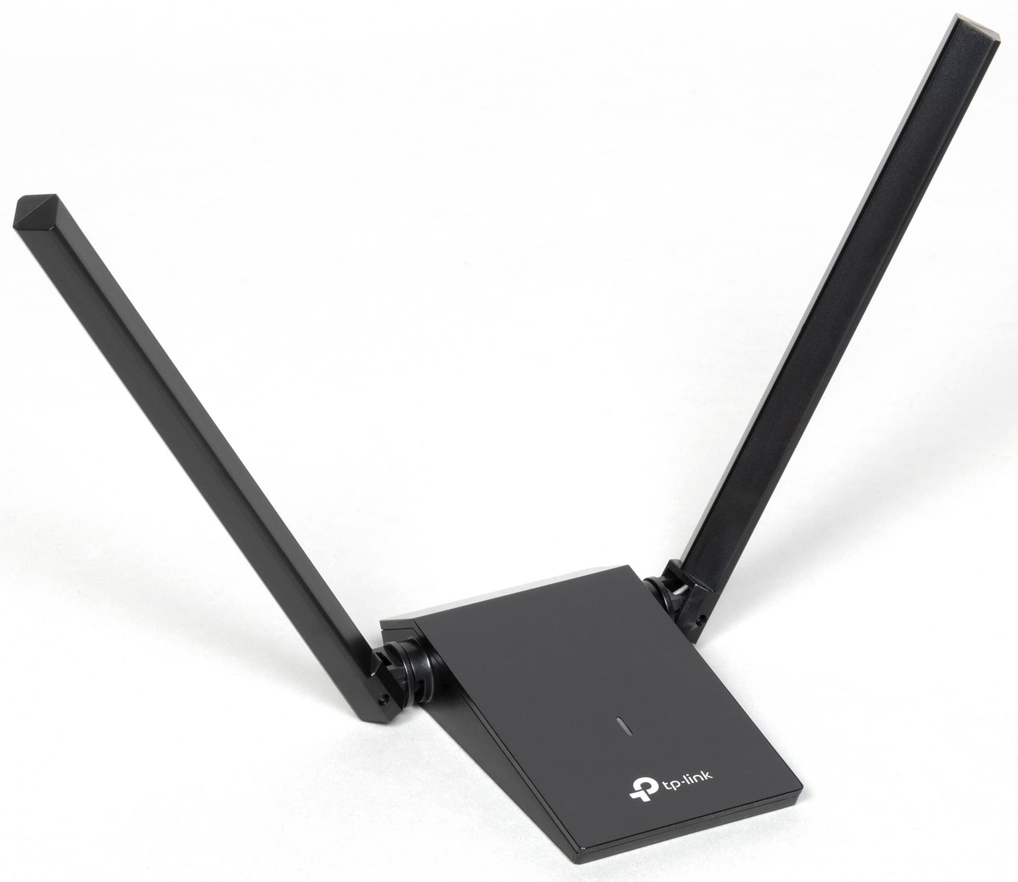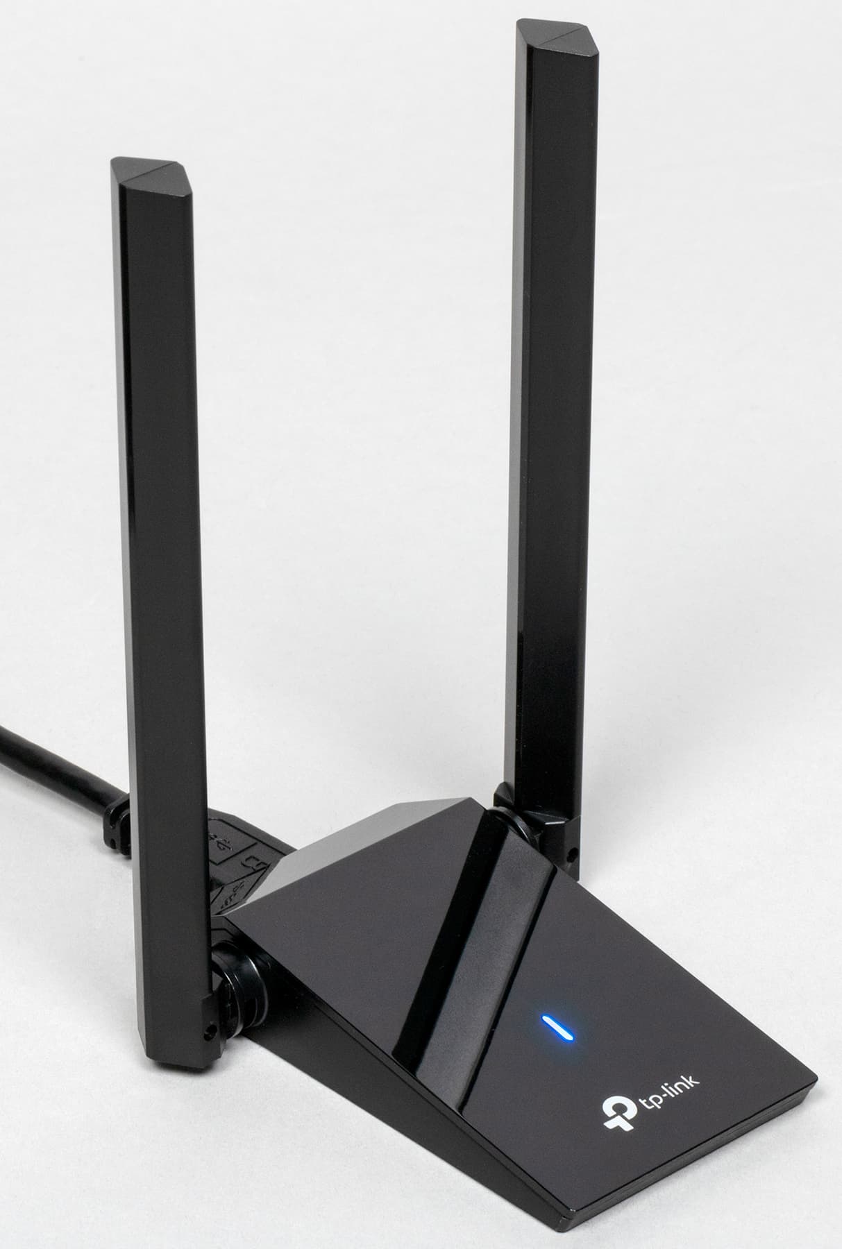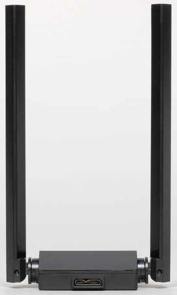 Адаптер отличается прежде всего высокой скоростью беспроводного соединения, достигающей 574 Мбит/с в диапазоне 2,4 ГГц, 1201 Мбит/с в диапазоне 5 ГГц, а в сумме — 1800 Мбит/с. Это определяет принадлежность изделия к классу устройств AX1800. Двухантенное исполнение позволяет улучшить качество сигнала и увеличить скорость передачи данных. Поддержка технологий MU-MIMO и OFDMA обеспечивает низкую задержку в сетях со множественными подключениями даже при большой загруженности, а пространственное моделирование сигнала (Beamforming) дает возможность фокусировать его в направлении связанных приемопередатчиков для повышения стабильности соединения.
